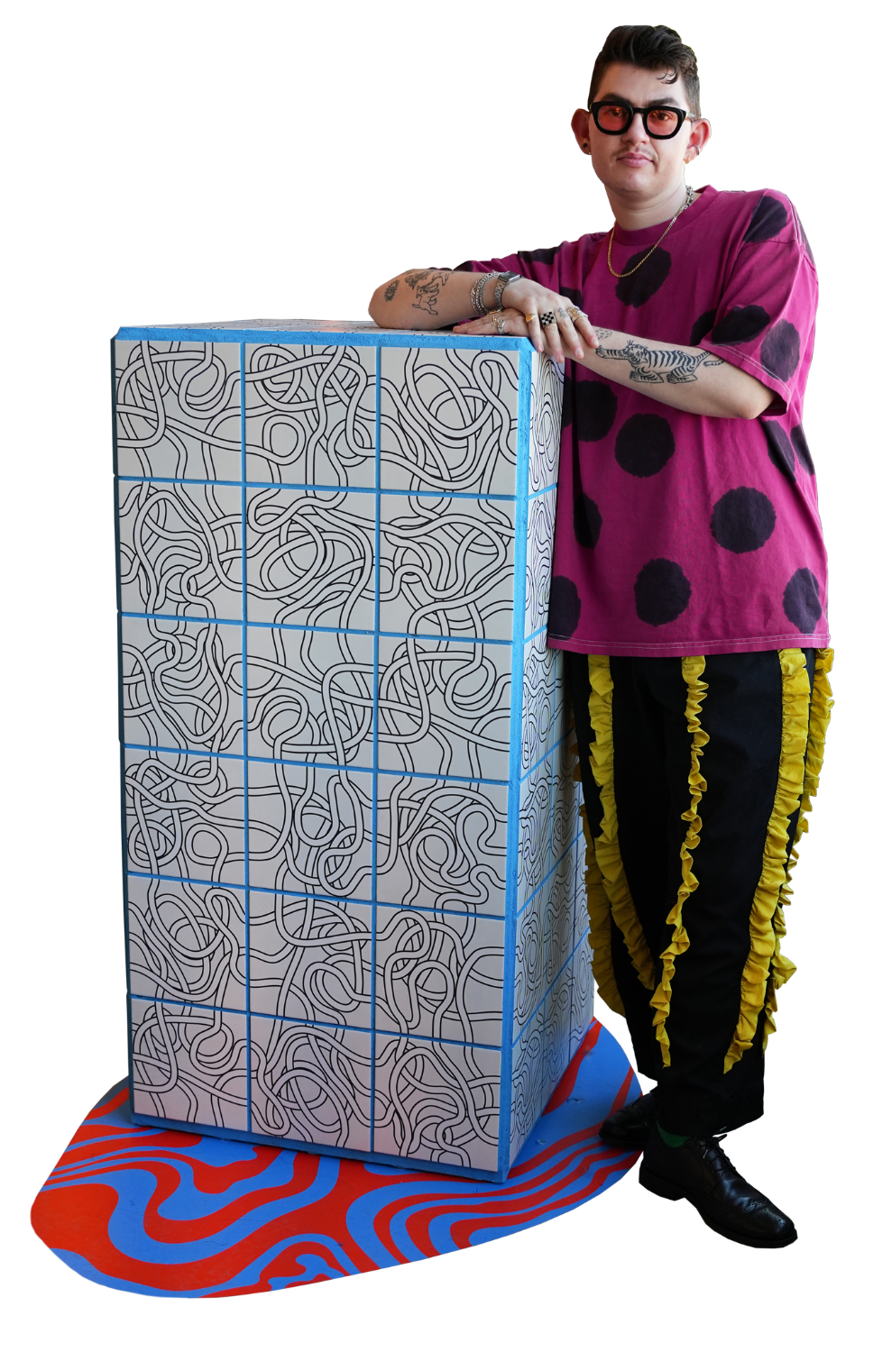 Zander Schlacter (he/they) is an interdisciplinary artist and designer from Nashville, Tennessee. Zander earned his BFA in textiles from the Rhode Island School of Design. In 2020 Zander founded his namesake home textile and decor line known for its maximalist, eccentric patterns and bold, adventurous color combinations. Zander works primarily within the medium of textiles across many disciplines and product categories; his artwork and textile prints have been applied to sculpture, home decor items, bedding, wallpaper, apparel, accessories, books, and ceramic tiles.
